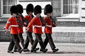 The guys in the red uniform and bearskin hats standing outside her palaces are trained professional soldiers from the british army's.